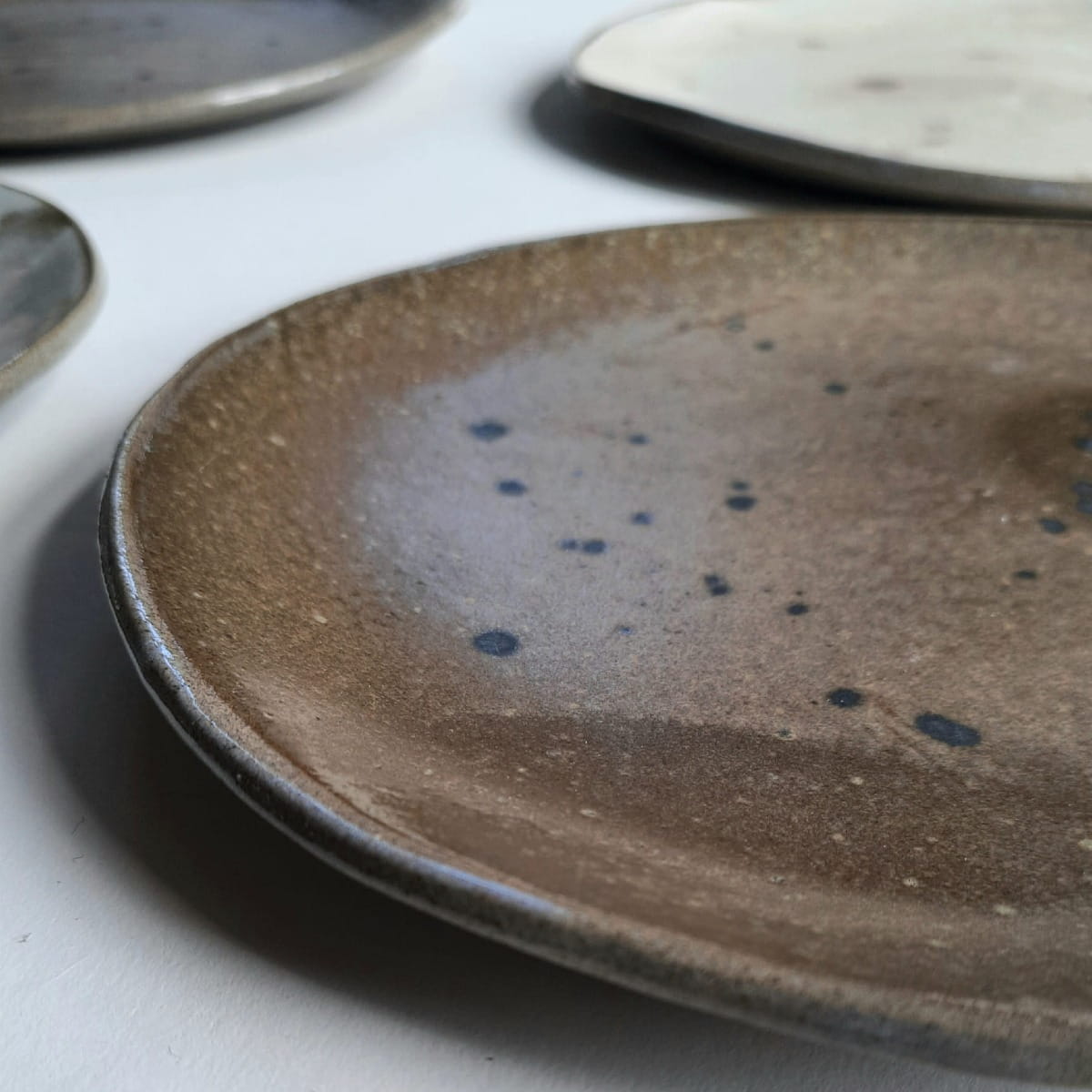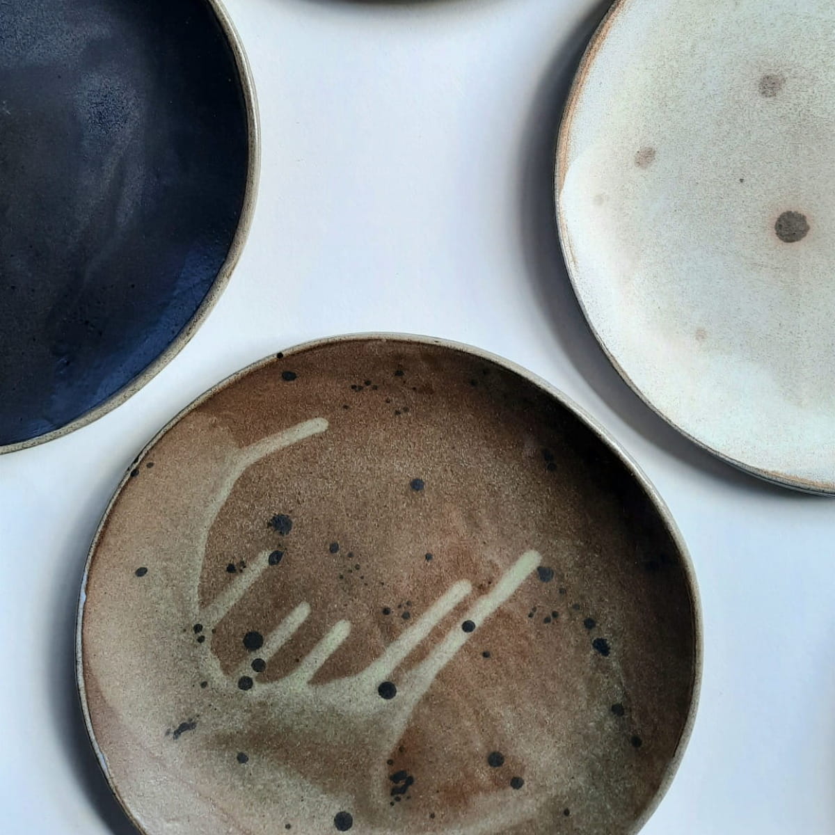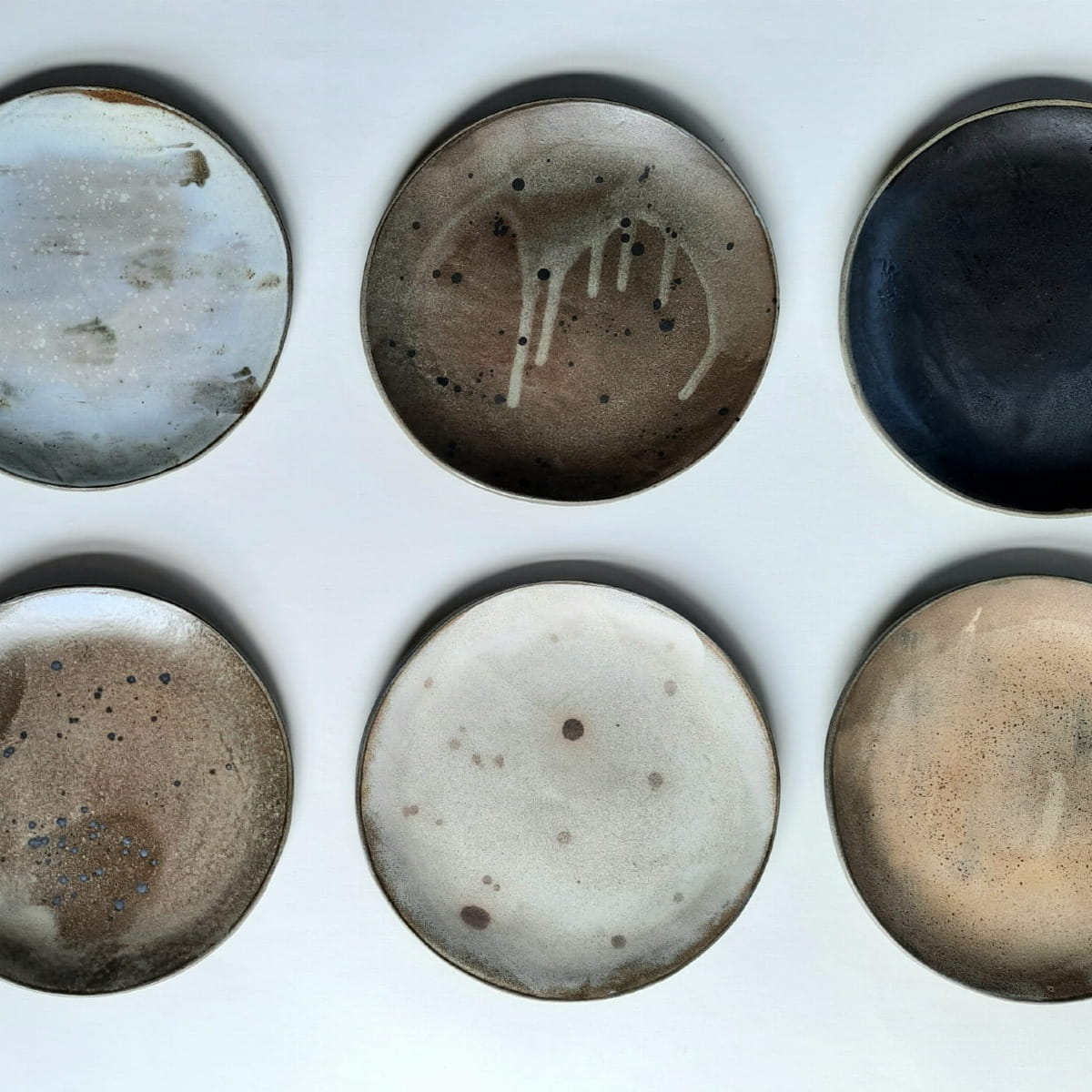 Komplet 6 ręcznie wykonanych talerzy obiadowych, które mogą również służyć jako lunchowe czy śniadaniowe. Każdy talerz jest w innym kolorze i ma swoje unikalne "zdobienia". Całość stanowi nietuzinkowy komplet.
